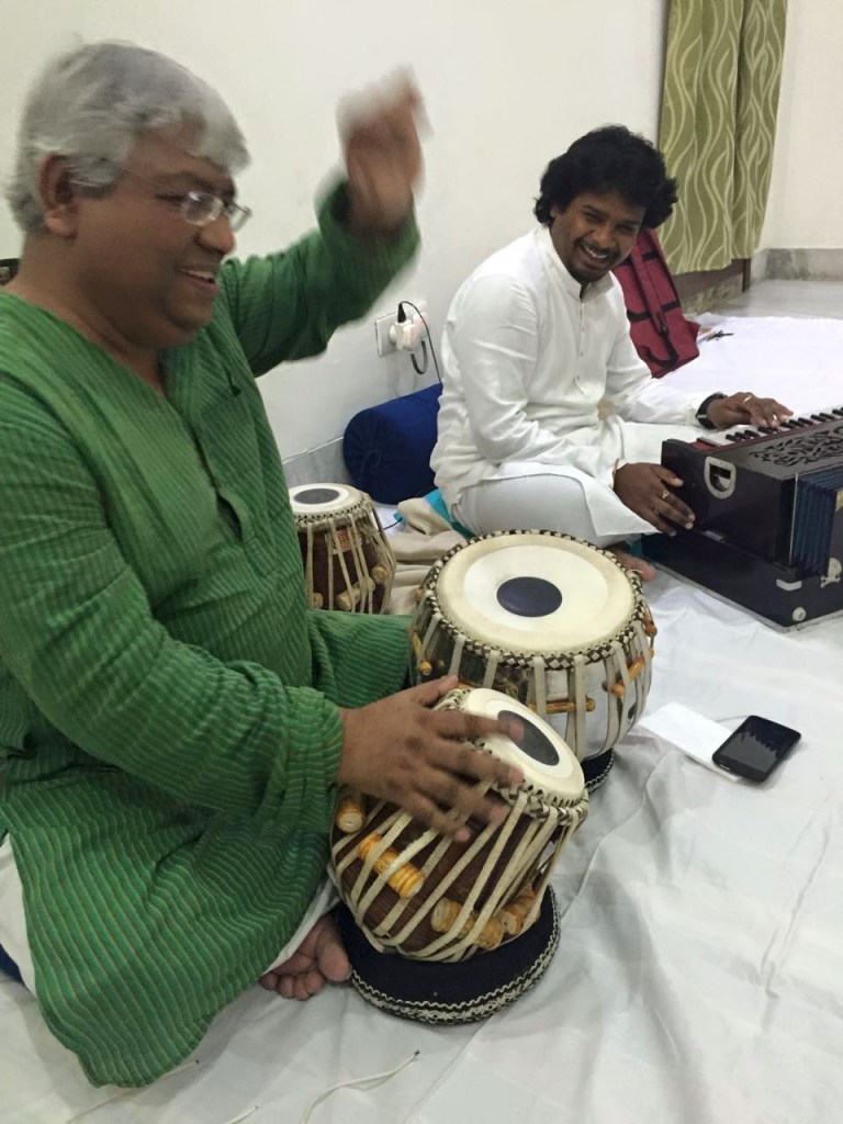 The Milestone series of baithak and workshops at Aakriti Foundation. At Studio Aakriti, South City II, Gurgaon.Ramakant Gaikwad, a rising vocalist of the Patiala Gharana, mesmerised all by his soulful and mature khayaal in Yaman, and delicate renderings of thumri and bhajan. The students of Aakriti Foundation were blessed to have him lead a thoroughly engaging workshop early on the Sunday morning at Studio Aakriti. Tabla maestro Shiv Shankar Ray took the music to yet another level of aesthetic delight with his sensitive, melodious and extremely skilful accompaniment.